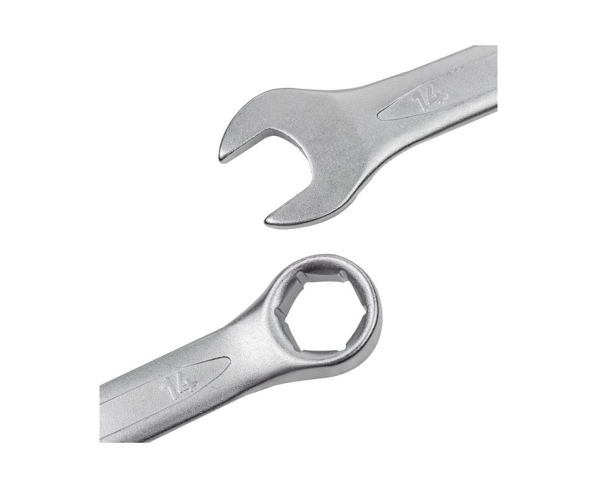 Рожковая часть позволяет добраться до крепежа, расположенного в труднодоступных местах, а накидная — идеально подходит для откручивания и затягивания нагруженных резьбовых соединений. Шестигранный накидной профиль обеспечивает прочное сцепление с крепёжным элементом и предотвращает проскальзывание.