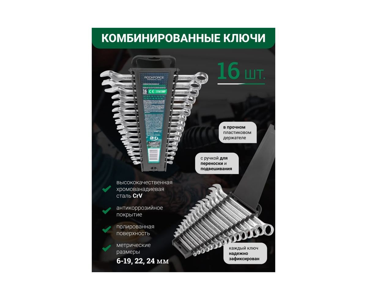 Набор ключей комбинированных Rockforce RF-5161MP(54740) 16пр. 6-19, 22, 24мм
