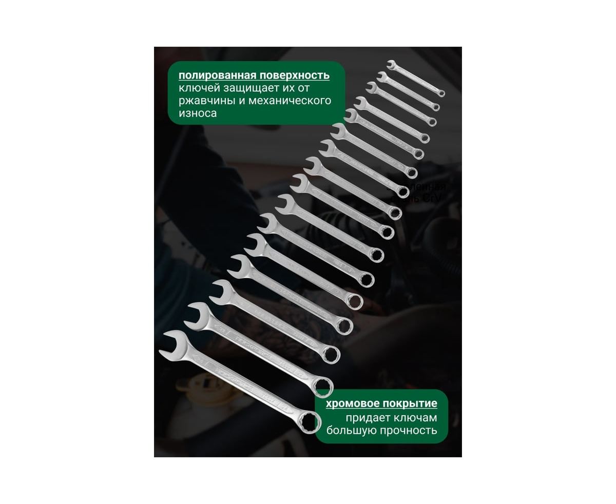 Долговечность. Ключи изготовлены из высококачественной хромованадиевой стали Cr-V, что значительно увеличивает их устойчивость к механическим нагрузкам.