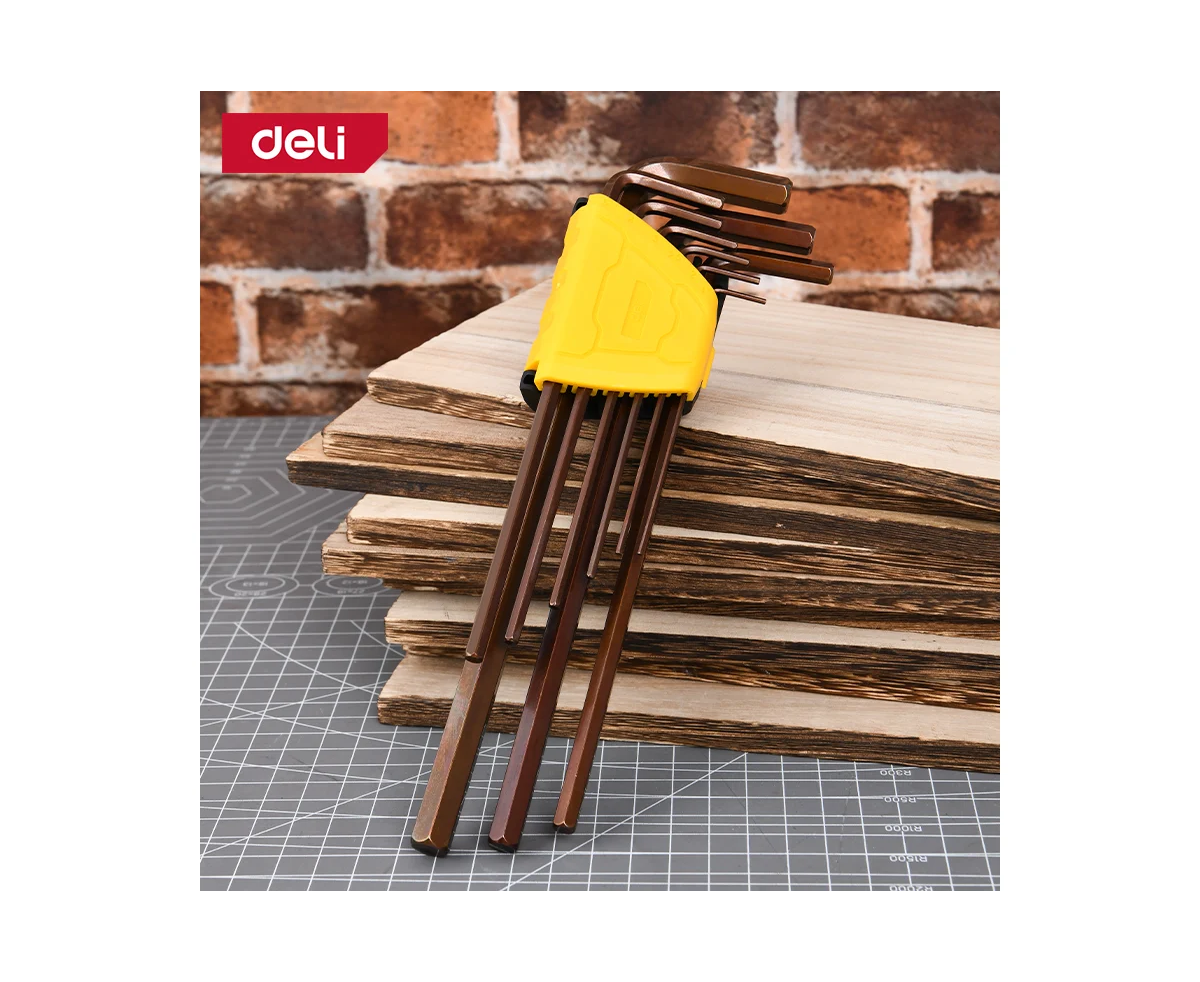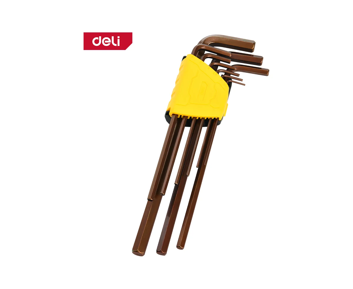 Набор ключей шестигранных Deli DL230808G сверхдлинных 9 шт размеры 1,5,2,2,5,3,4,5,6,8,10мм, пластиковый держатель