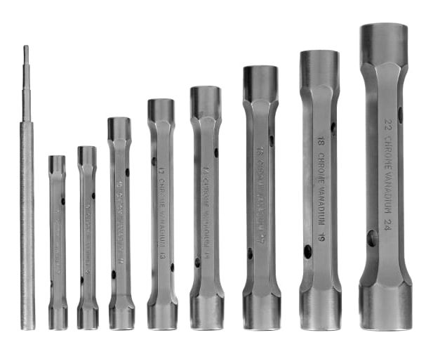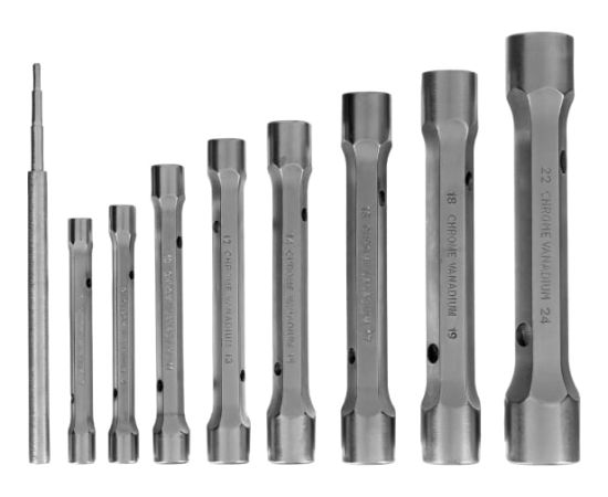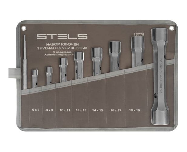 Набор торцевых усиленных ключей-трубок 9шт, CrV STELS 13779 представляет собой комплект прочных и долговечных в работе двусторонних инструментов для работы с болтами и шпильками, особенно, расположенными в труднодоступных местах. Для предотвращения утери компонентов при хранении и транспортировке предусмотрен удобный чехол.