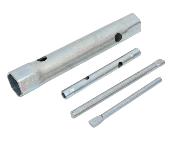 Набор торцевых трубчатых ключей Pobedit 8 штук 6-22 мм 2807534 также дополнительно включает в себя два воротка, которые упрощают дотягивание крепежа.