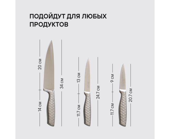 нож поварской 20 см, нож универсальный 13 см, нож для овощей 9 см