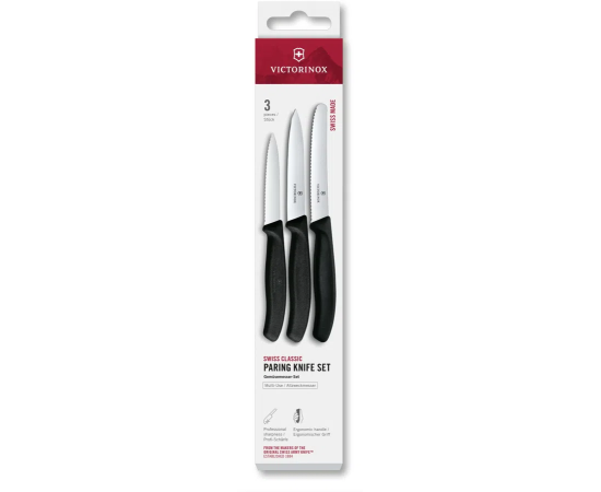 Набор ножей кухонных Victorinox Swiss Classic 6.7113.34 для овощей компл. 3предм. черный европодвес