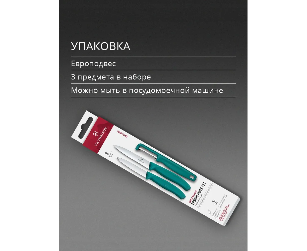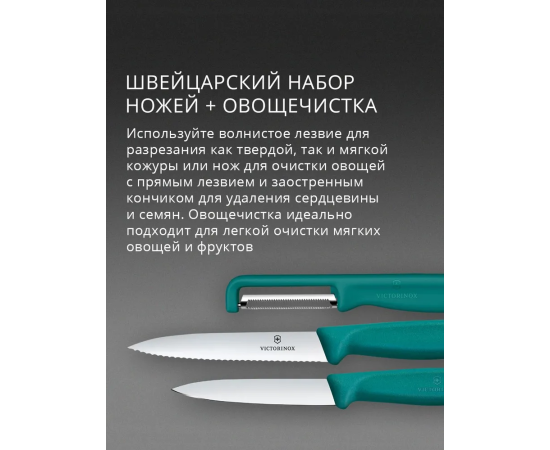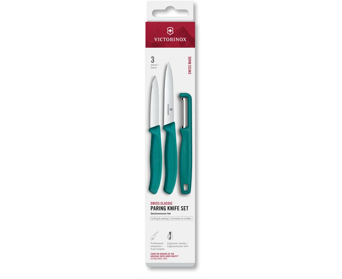 Набор ножей кухонных Victorinox Swiss Classic 6.7114.33C1 для овощей компл. 3предм. овощеч. зеленый европодвес