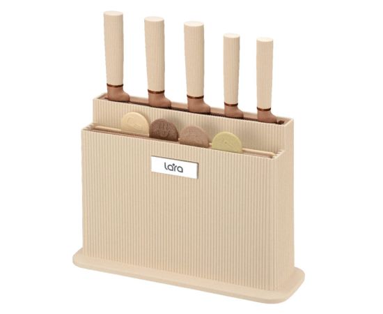 Набор ножей LARA LR05-77 бежевый 10 предметов Подставка/5 ножей/4 разделочные доски