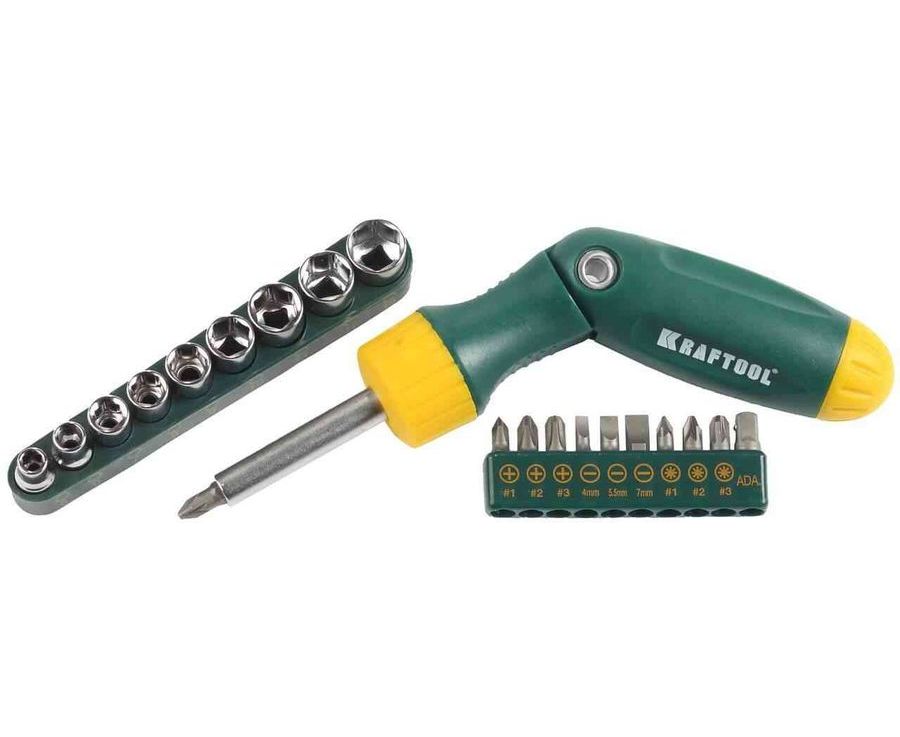 Набор инструментов KRAFTOOL предназначен для монтажа и демонтажа резьбовых соединений. Насадки изготовлены из высокопрочной хромолибденовой стали. Трехпозиционный реверс обеспечивает комфорт и высокую скорость выполнения работ даже в труднодоступных местах.