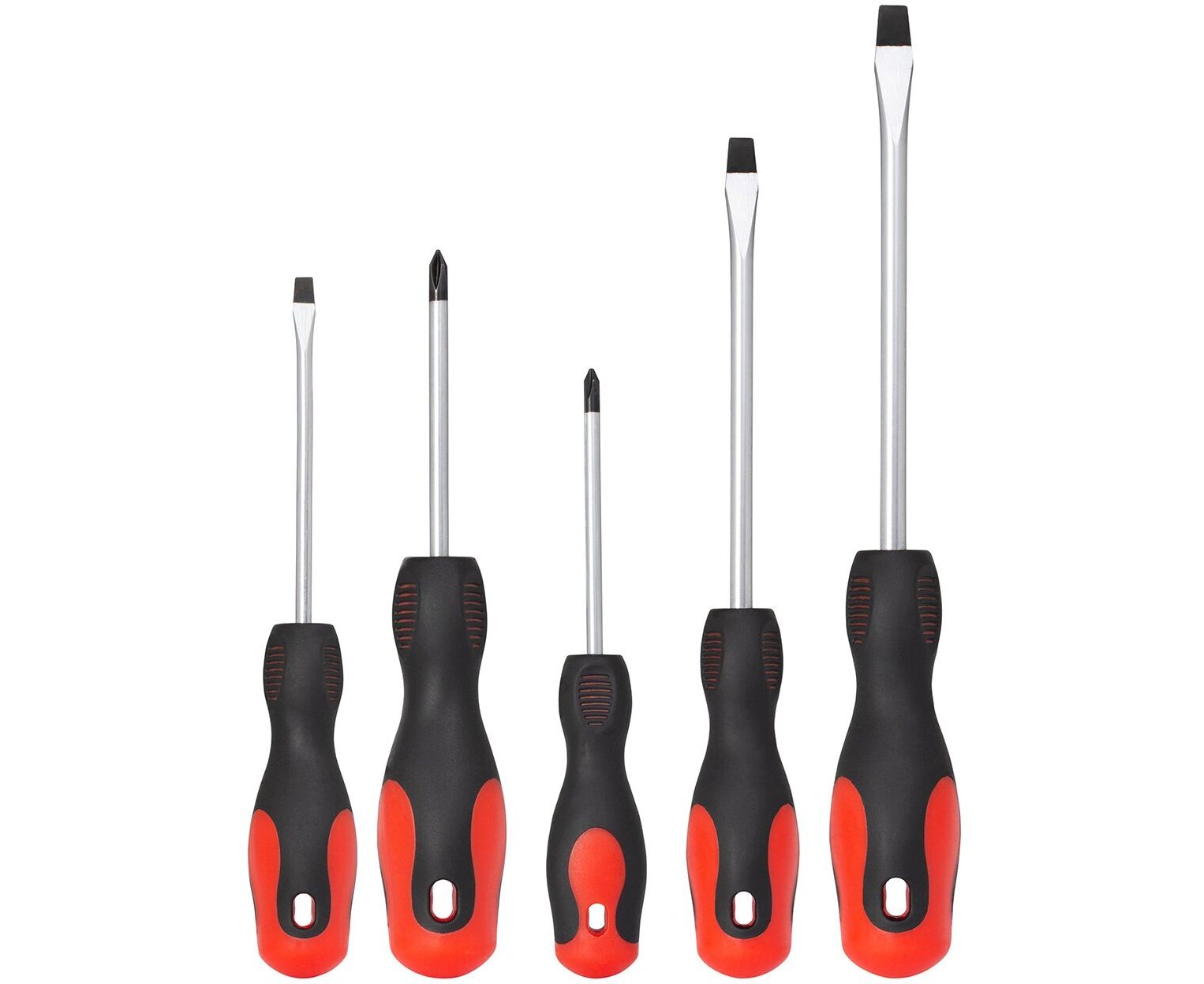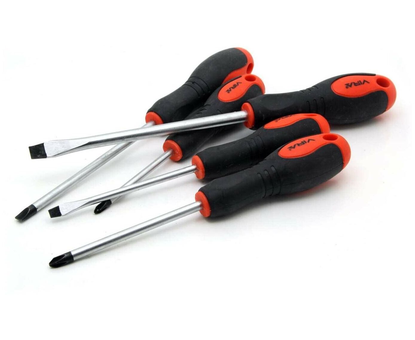 Каждая из отверток имеет двухкомпонентную прорезиненную ручку, которая обеспечивает надежный захват и эффективное вращение.