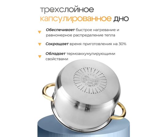 Особенности посуды: Двойные стенки, Крышка в комплекте, Мерные деления, Ненагревающиеся ручки, Можно мыть в посудомойке, Жаропрочная, С толстым дном, Профессиональная посуда