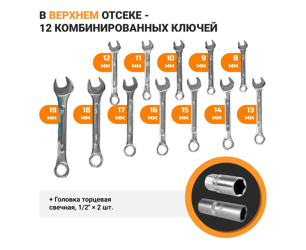- Ключ комбинированный (12 шт);