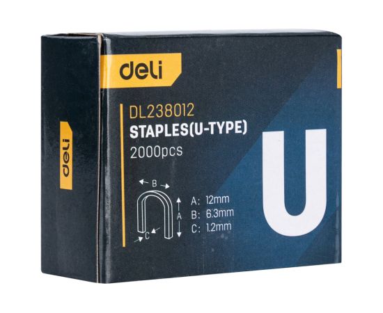 Набор скоб для степлера Deli DL238012 Тип U 12х6,3х1,2мм*2000шт нерж