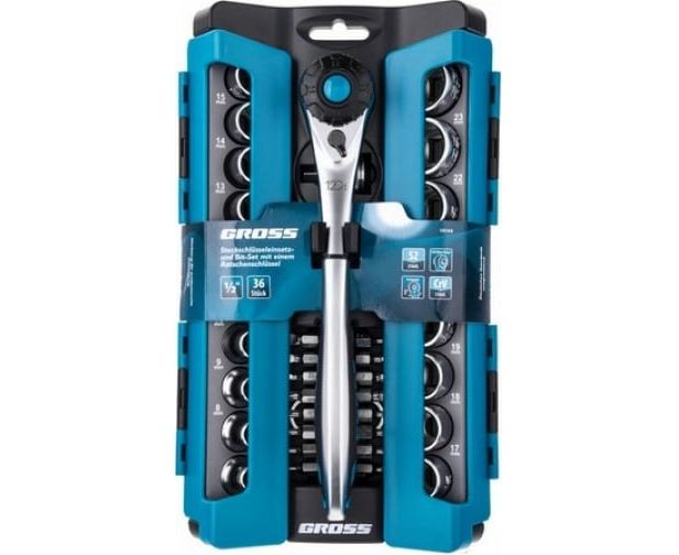 Набор торцевых головок Gross 14144 трещотка 120 зубьев 36 предметов