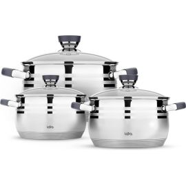 Набор посуды LARA LR02-77 ЧИКАГО, 6 пр. (кастр. 1.7л + 3.4л + 5.9л) стеклян. крышки