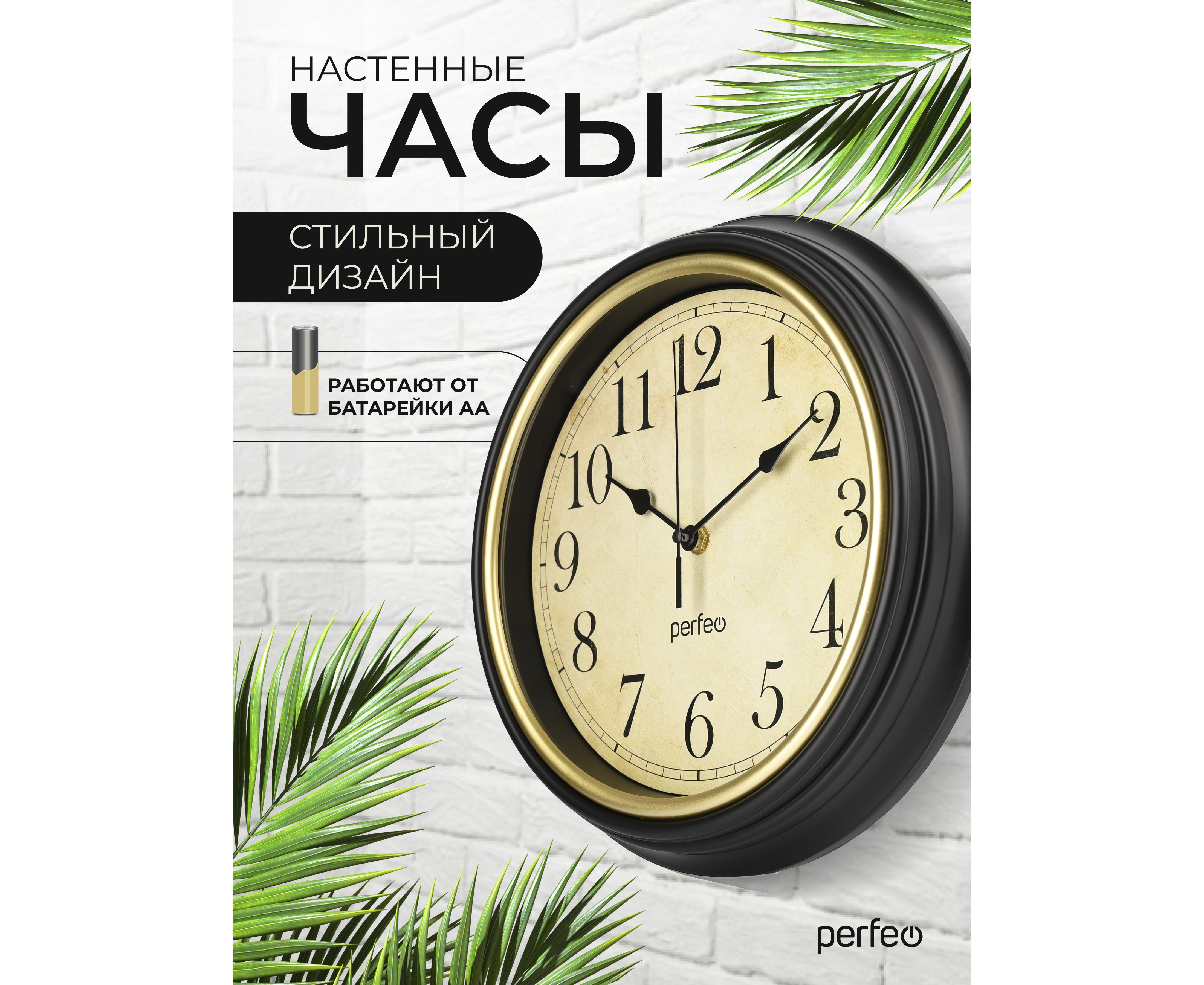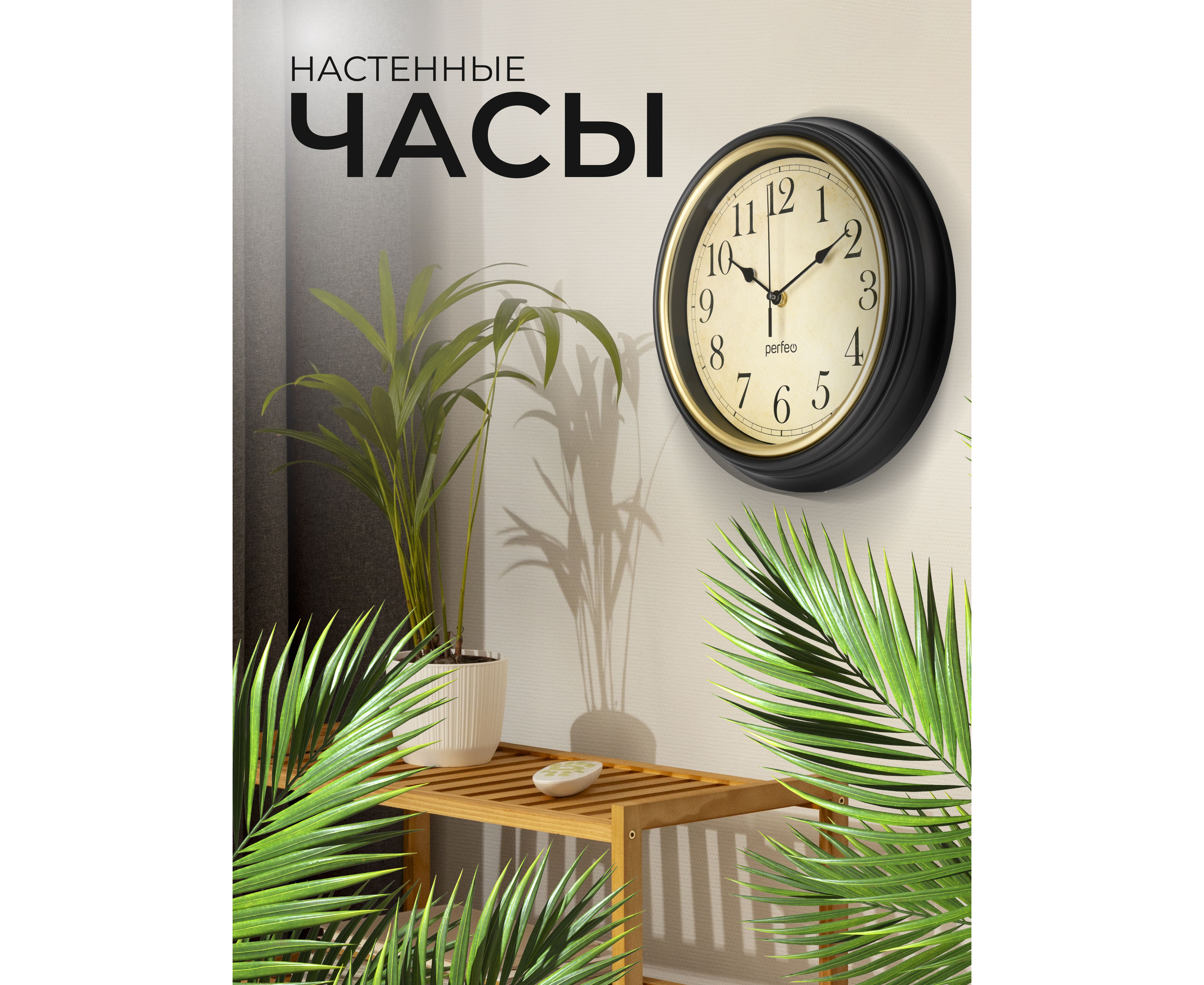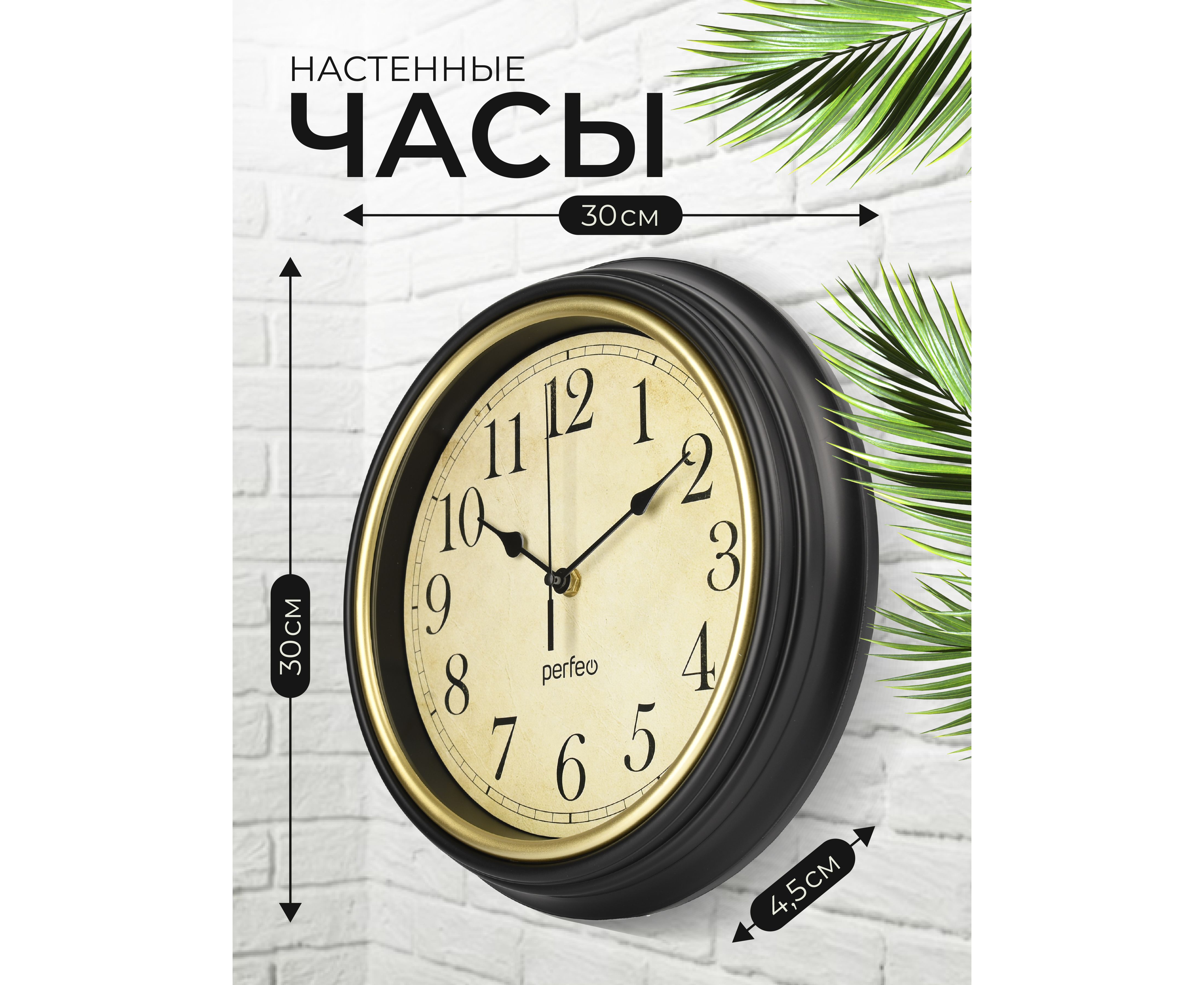 Настенные часы Perfeo "PF-WC-022"(С1) круглые д. 30 см, коричневый корпус / бежевый циферблат