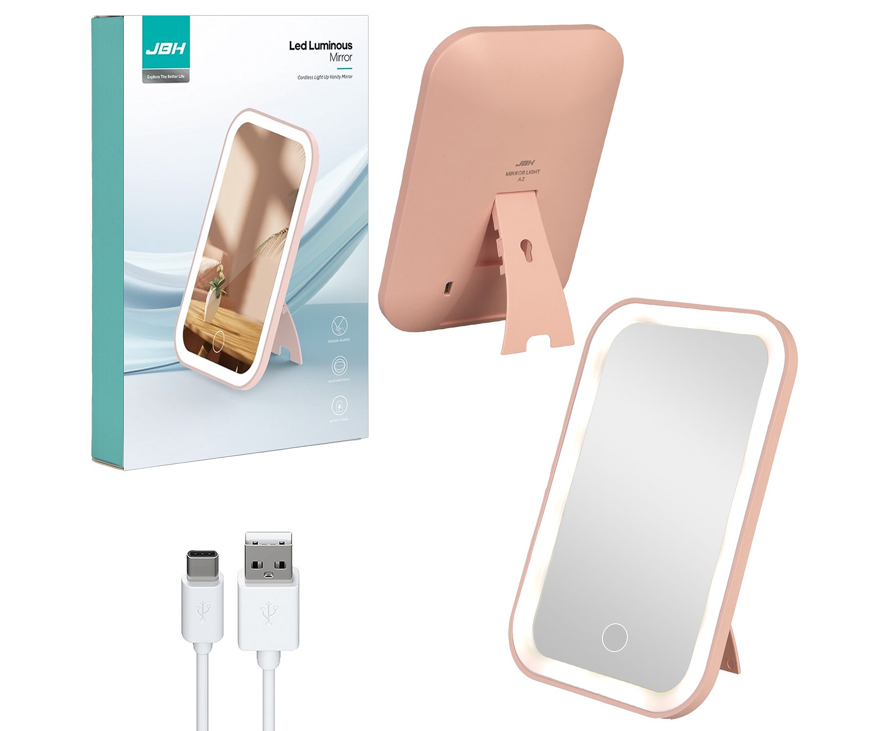 Настольное зеркало для макияжа с подсветкой A2 JBH (Pink)