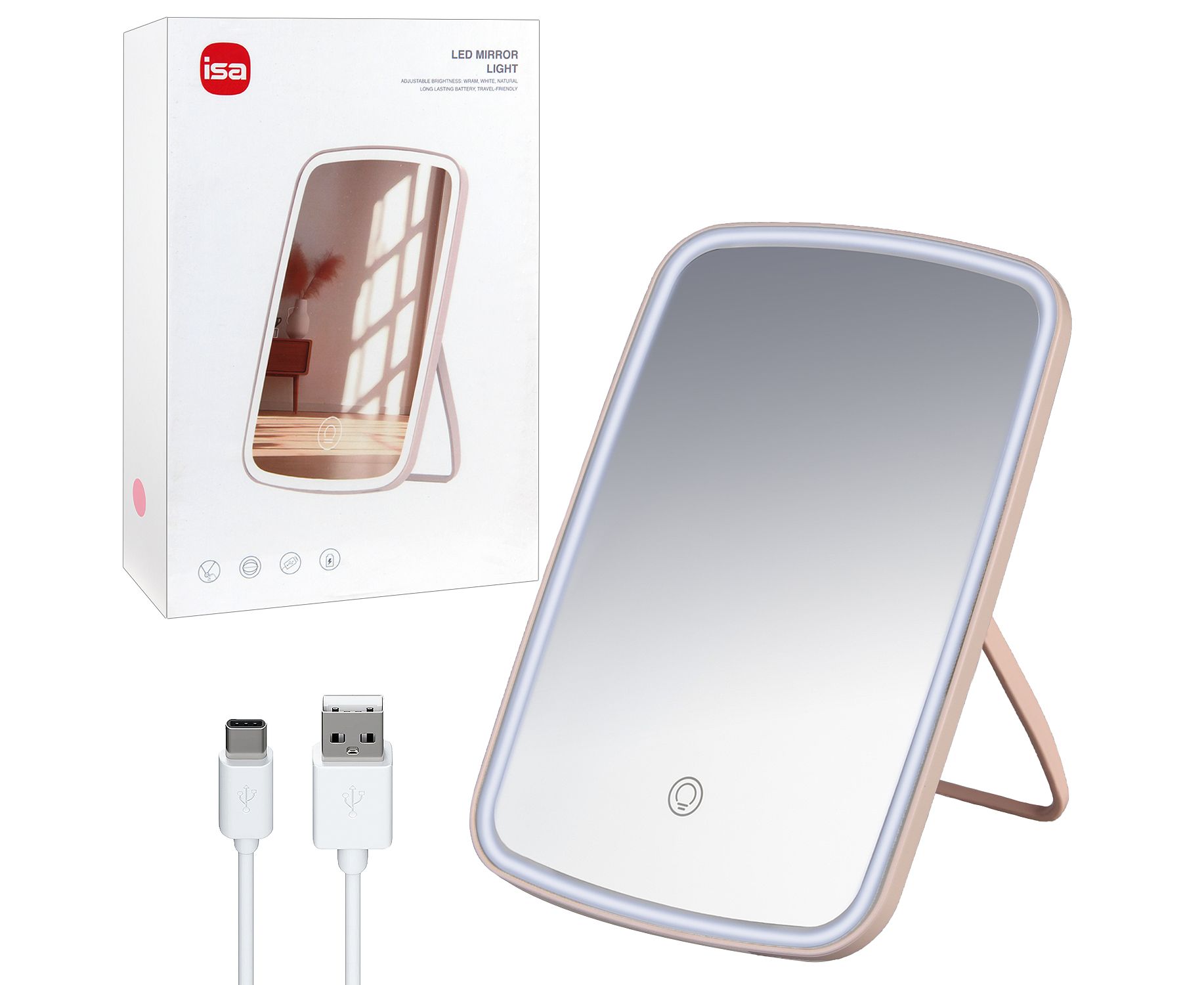 Настольное зеркало для макияжа с подсветкой ML-07 ISA (Pink)