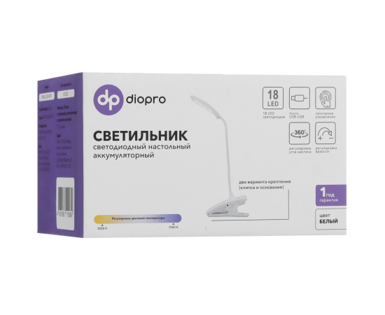 Настольный аккумуляторный светодиодный светильник Diopro DPNR-LLTLM9-WTE белый