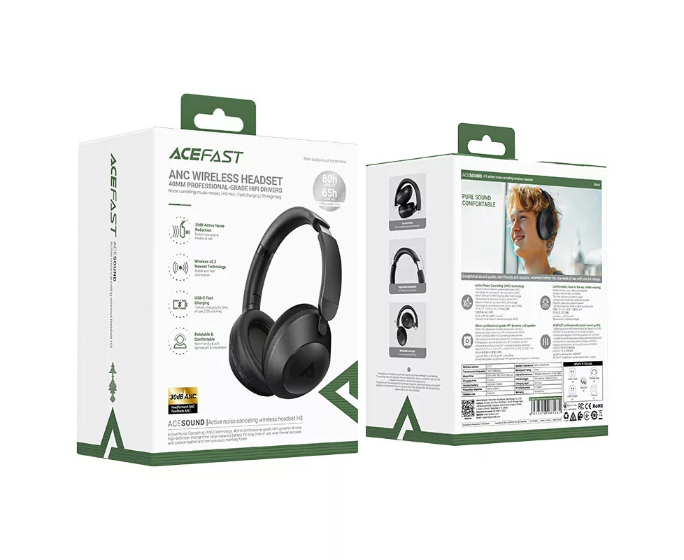 Наушники ACEFAST H3 Active Noise Canceling Wireless Headset Black