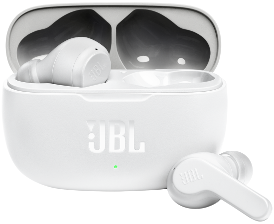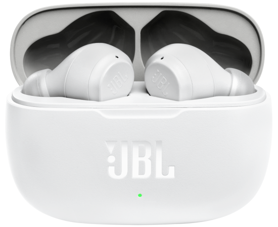 пара наушников JBL Wave 200TWS, чехол с функцией зарядки, зарядный кабель USB-С, 3 пары амбушюр разных размеров, гарантийный талон/предупреждение, краткое руководство пользователя/паспорт безопасности