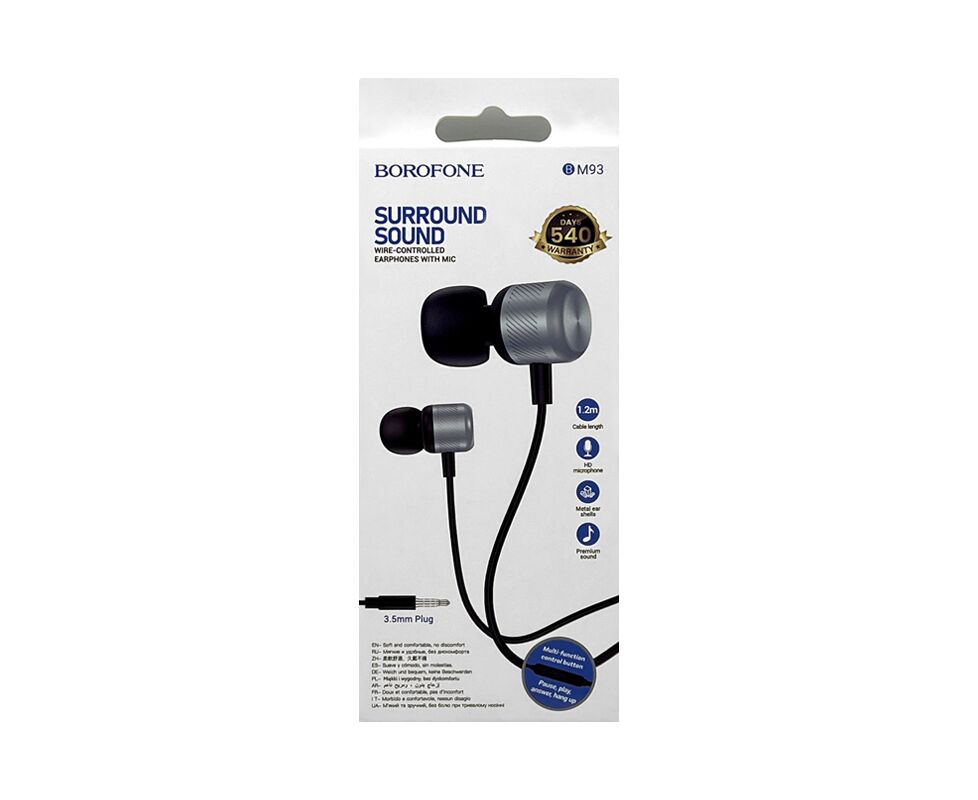 Наушники BOROFONE BM93 Platino universal earphones with microphone (серебро)