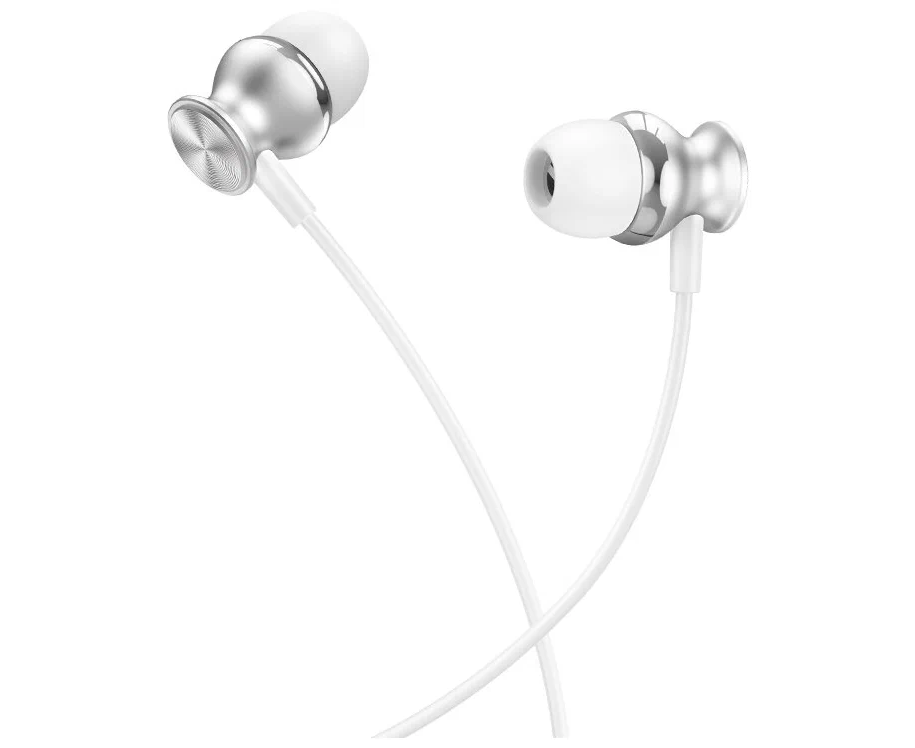 Наушники M106, Fountain metal universal earphones, HOCO, вакуумные, серебристые