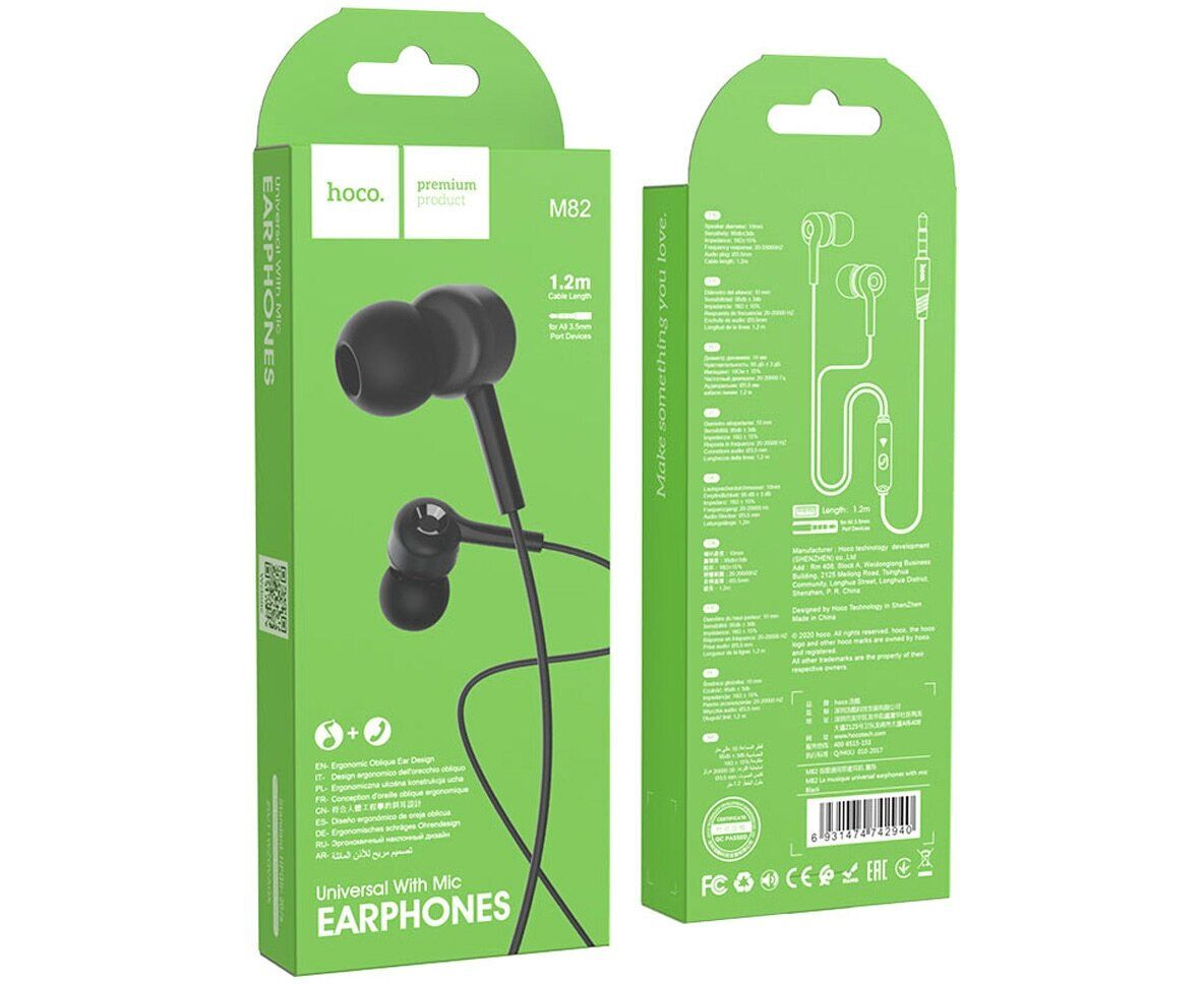 Наушники HOCO M82 La musique universal earphones with mic (черные)
