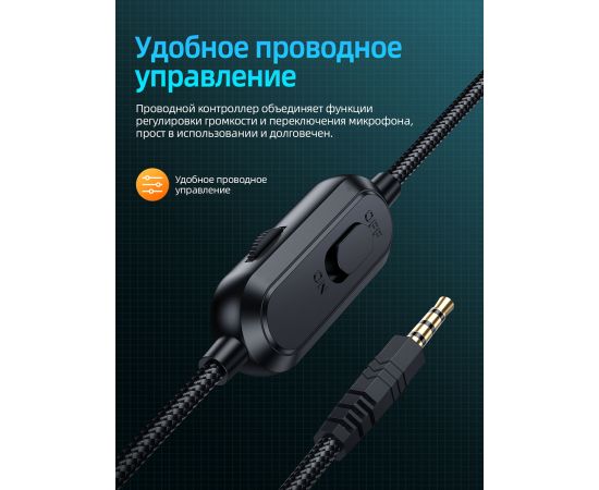 Проводное управление: регулировка громкости, переключатель микрофона