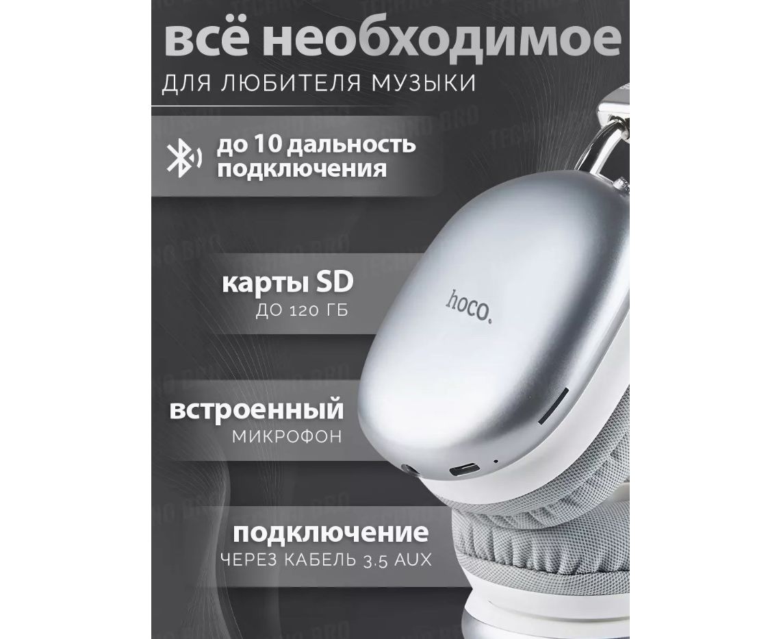 Наушники Hoco W35 Max ANC серебристый