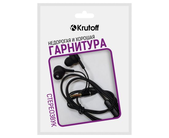 Наушники с микрофоном Krutoff HF-T67 черные (пакет)