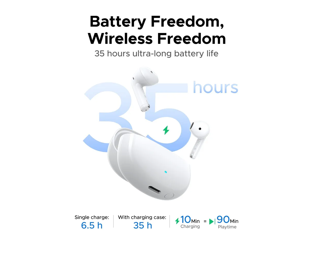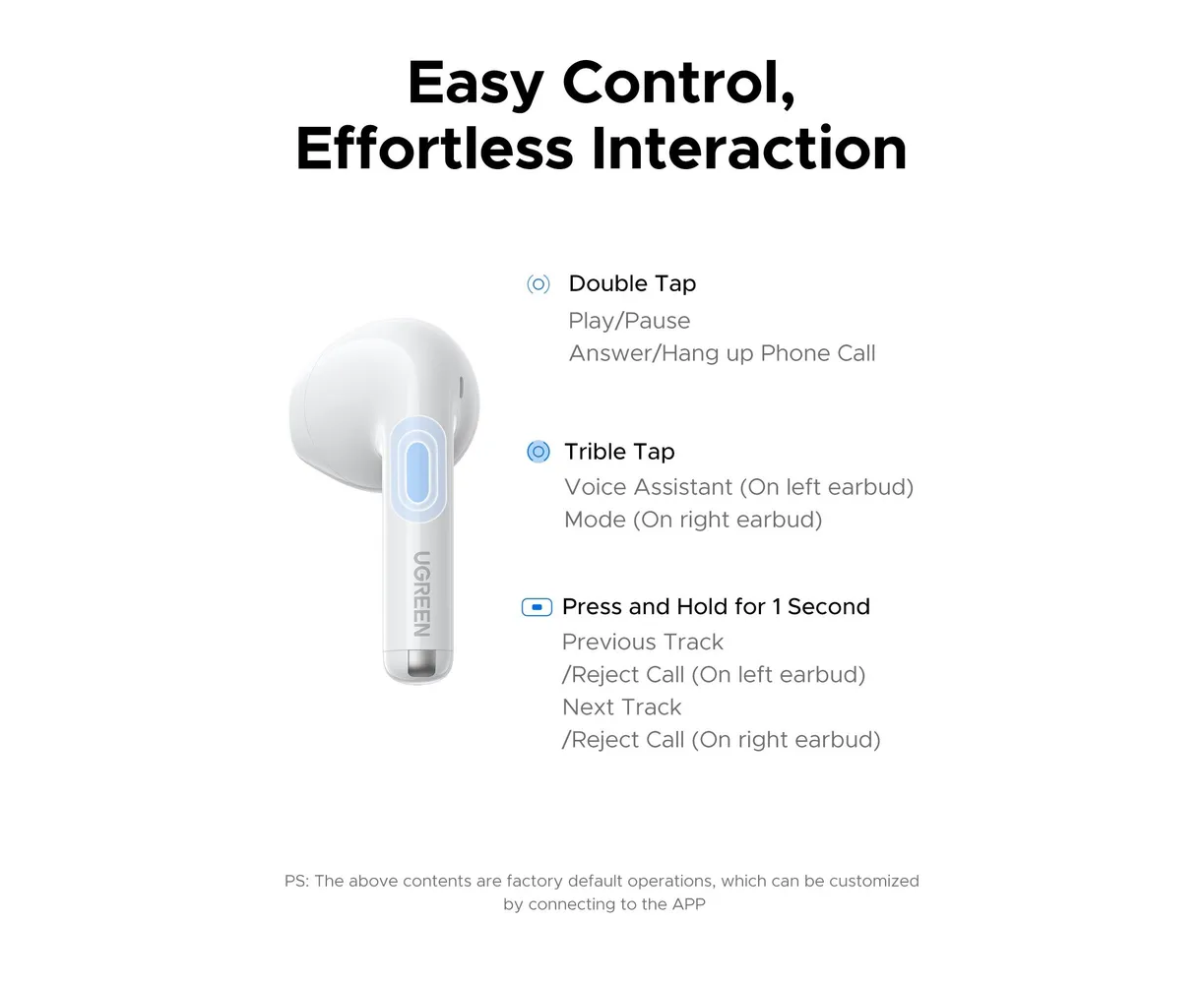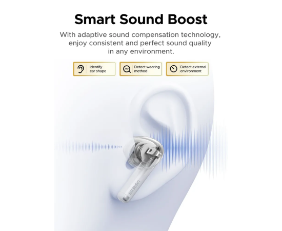 Наушники UGREEN WS217 (65876) LightBuds Bluetooth 6.0 Wireless ENC Earphone White