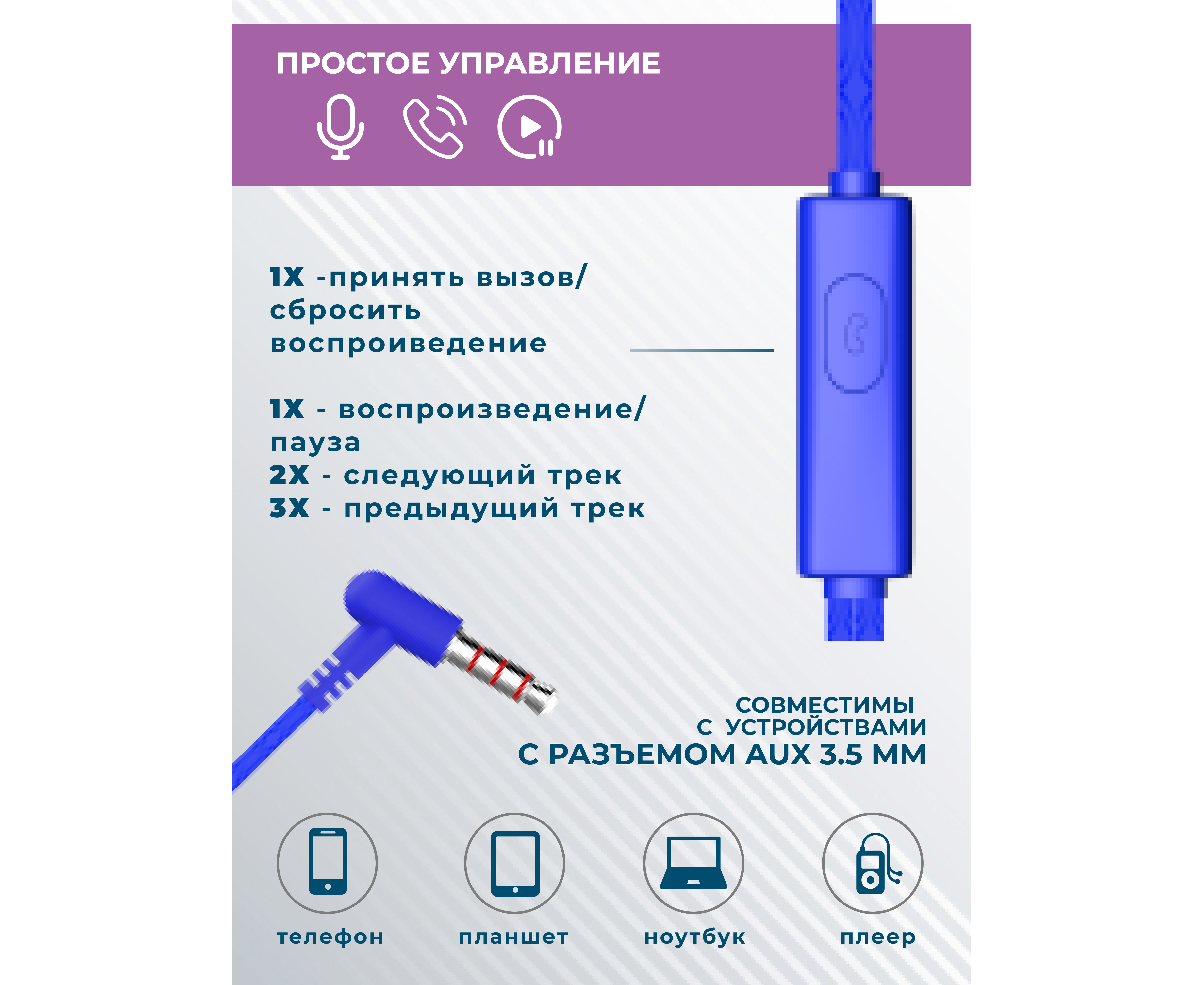 Материал: ABS-пластик, TPE, алюминиевый сплав Тип наушников: вакуумные, проводные Динамик: 10 мм Разъём: miniJack 3,5 мм Длина кабеля: 1,1 м Пульт ДУ: микрофон, старт/пауза, ответ на звонок Комплектация: наушники, сменные амбушюры, две пылезащитные заглушки для разъема AUX, кольцо-держатель для смартфона, буклет. Цвета: White, Black, Red, Blue