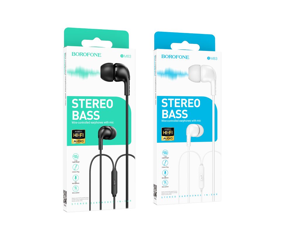 Borofone BM83 - универсальные наушники с микрофоном, аудио штекером 3.5мм и кабелем длиной 1.2м. Вакуумные наушники с отличным звуком для комфортного прослушивания музыки. Эргономичные, легкие и удобные в использовании. Обеспечивают отличное качество звучания и максимальную степень комфорта.