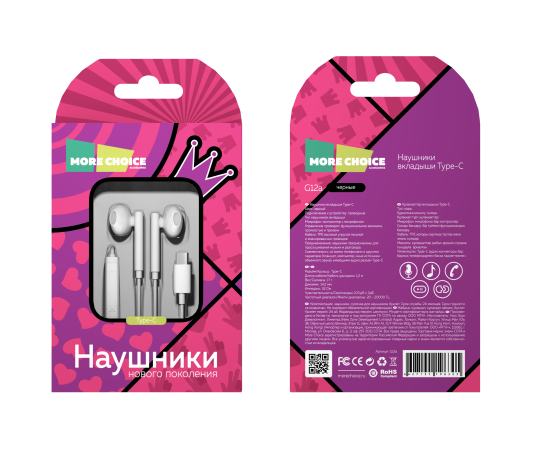 Наушники вкладыши Type-C разъём с МК и рег. громкости длина 1.2м More choice G12 (White)