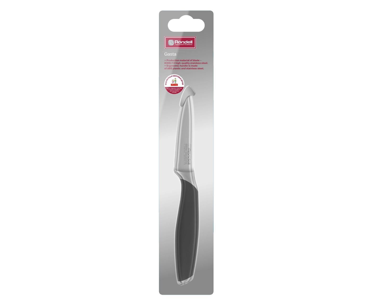 Нож кухонный Rondell Gasta RD-1868 стальной универсальный для овощей лезв.88мм прямая заточка черный блистер