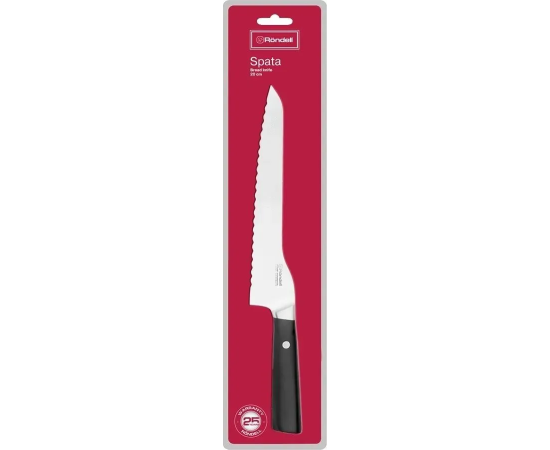 Нож кухонный Rondell Spata RD-1135 стальной для хлеба лезвие 200мм серрейт. заточка черный блистер