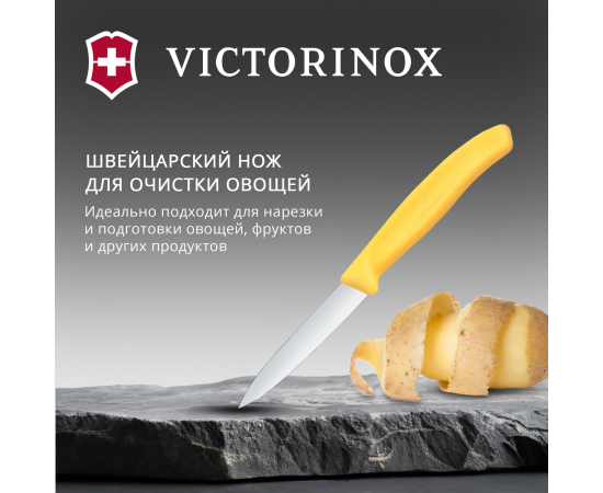 Нож кухонный Victorinox Swiss Classic 6.7608.C1 для чистки овощей и фруктов лезв.80мм прямая заточка желтый