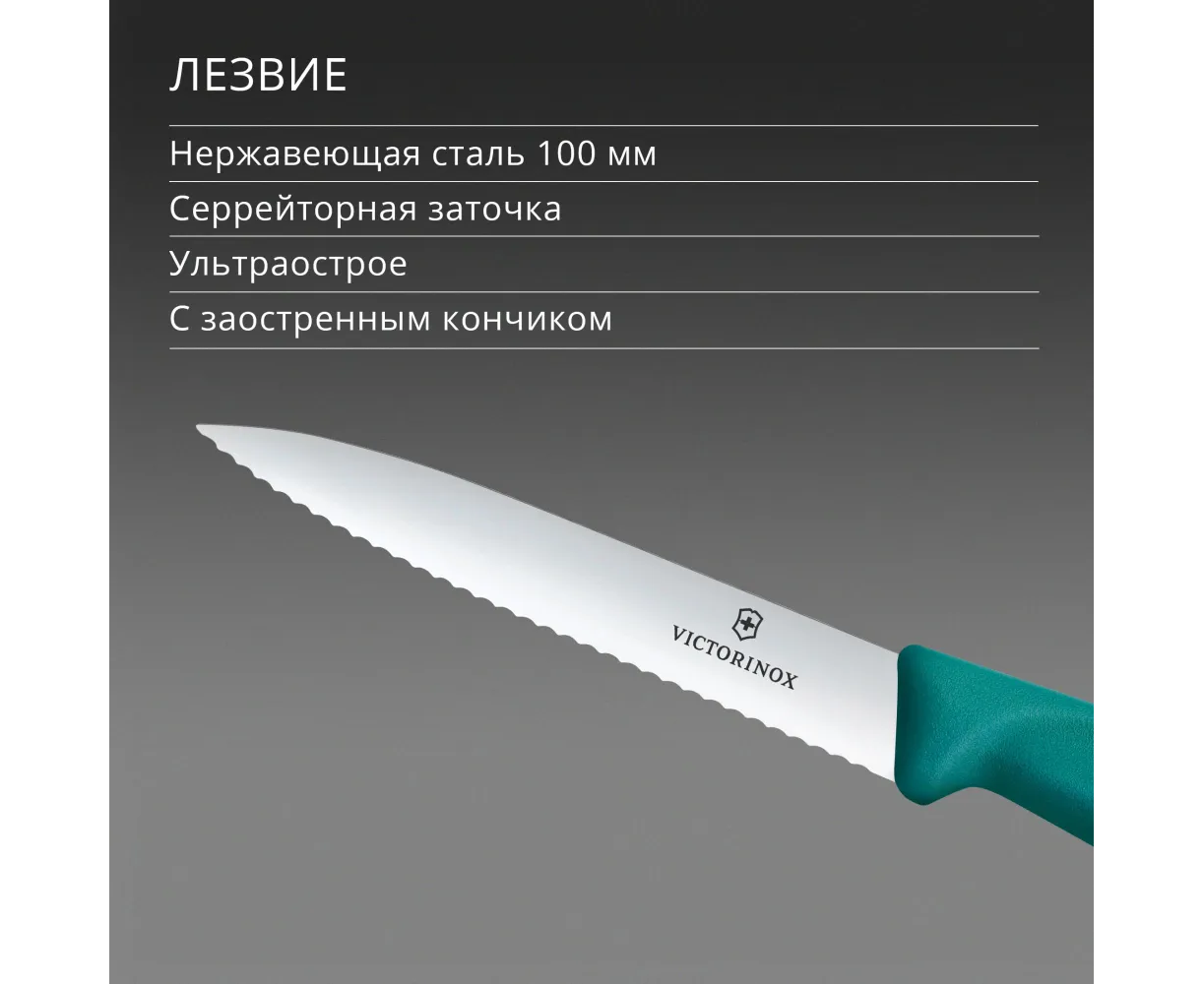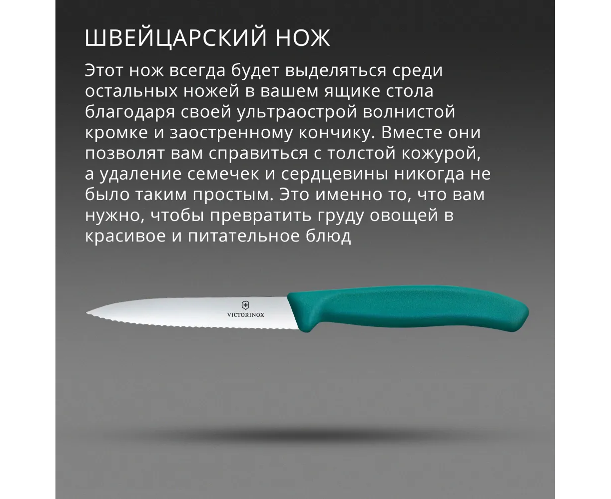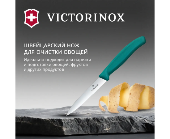 Нож кухонный Victorinox Swiss Classic 6.7734.C1 для чистки овощей и фруктов лезв.100мм серрейт. заточка зеленый