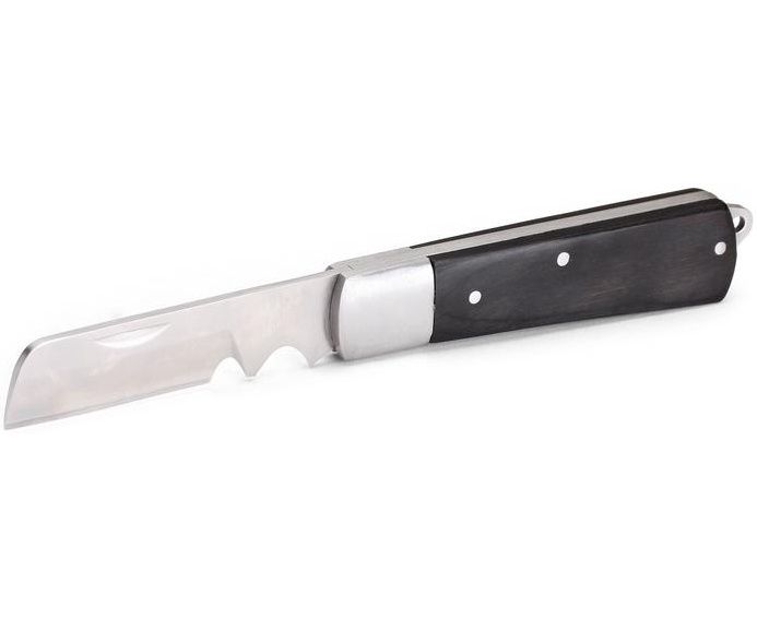 Нож монтерский КВТ НМ-10 77663 - складной инструмент с прямым лезвием и дополнительной зоной для зачистки жил от окисной пленки. Применяется для удаления изоляции и оболочки кабелей. Лезвие ножа выполнено из нержавеющей стали твердостью HRC 51-55, что гарантирует долгий ресурс работы инструмента. Для удобства хранения и транспортировки предусмотрено отверстие на рукоятке для крепления карабина.