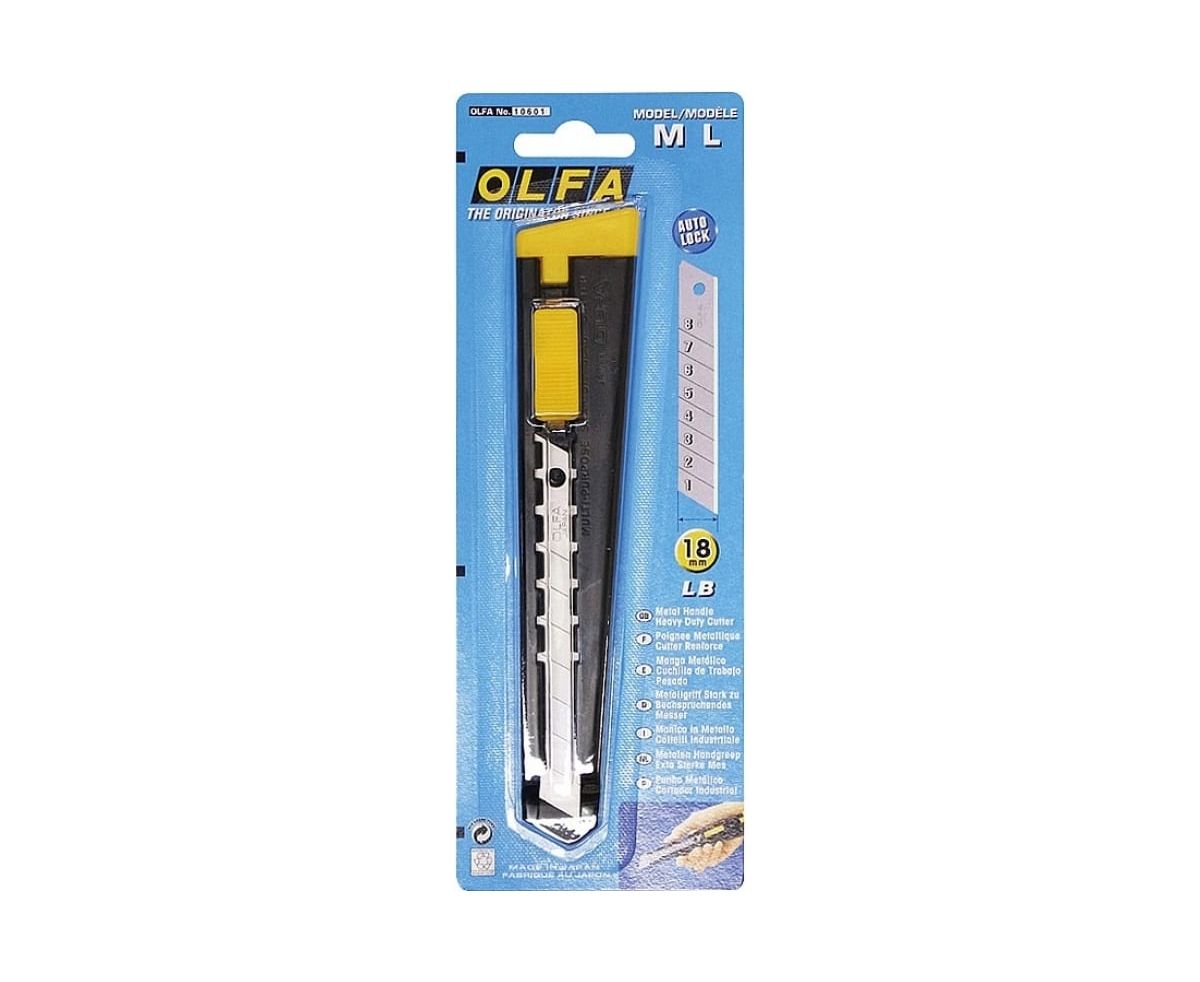 Если Вам нравится OLFA OL-180, но нужна большая сила реза, тогда универсальный нож с металлической ручкой OLFA ML шириной 18 мм — то, что вам нужно. Отличается тонким профилем, что позволяет носить его всегда с собой в кармане или сумке для инструментов. Стальная рукоятка устойчива к коррозии и химическим веществам. Предусмотрена автоматическая фиксация лезвия.