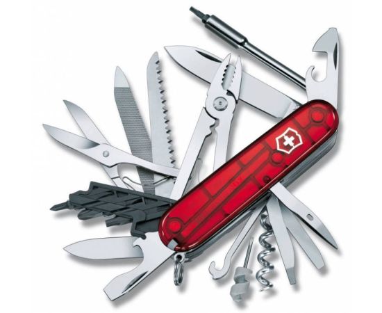 Описание: Складной швейцарский нож Victorinox CyberTool 41 - это многофункциональный инструмент (мультитул) с прозрачной красной рукоятью; помещается в кармане, содержит 30 элеметов и выполняет 41 функцию.