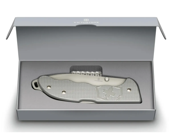 Victorinox Evoke Alox — складной нож, выпущенный в продолжение линейки Victorinox Hunter Pro. Evoke стал более удобным и функциональным, чем его предшественник. Клинок формы drop-point выполнен из устойчивой к коррозии стали, на его поверхность нанесено серое матовое покрытие.