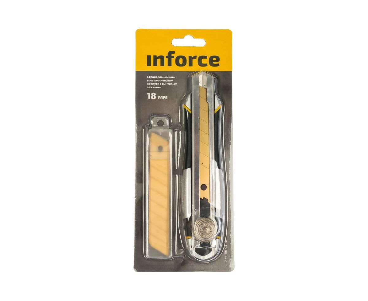 Нож строительный Inforce 06-02-12 18 мм в металлическом корпусе с винтовым зажимом