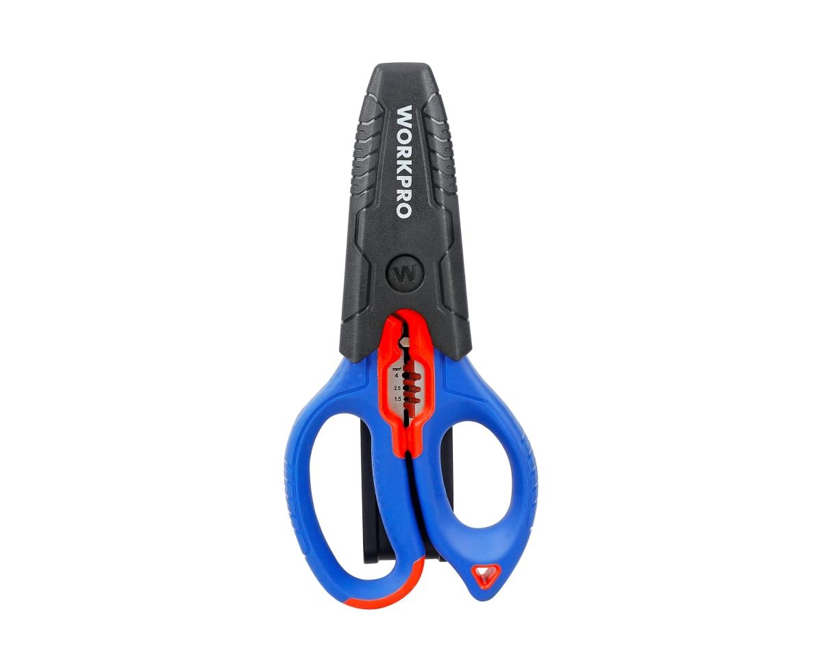 Ножницы электрика WORKPRO WP294003 имеет 5 отверстий для зачистки 10-18AWG