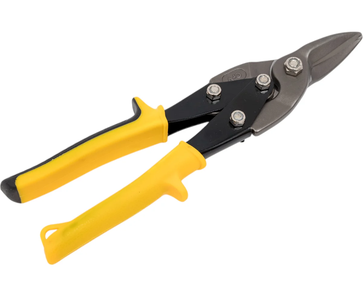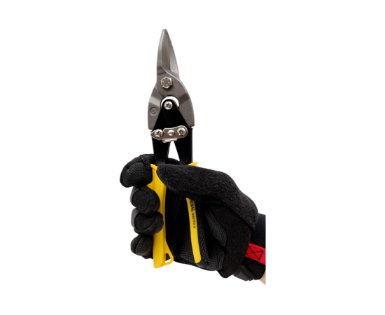 Прямой тип ножниц обеспечивает точность реза, что особенно важно при выполнении сложных задач. Губки из хромованадиевой стали (CrV) гарантируют долговечность и устойчивость к износу, что делает их идеальными для частого использования. Двухкомпонентные рукоятки обеспечивают удобный и надежный захват, что снижает усталость рук при длительной работе. Черно-желтый цвет рукояток позволяет легко находить инструмент среди других.