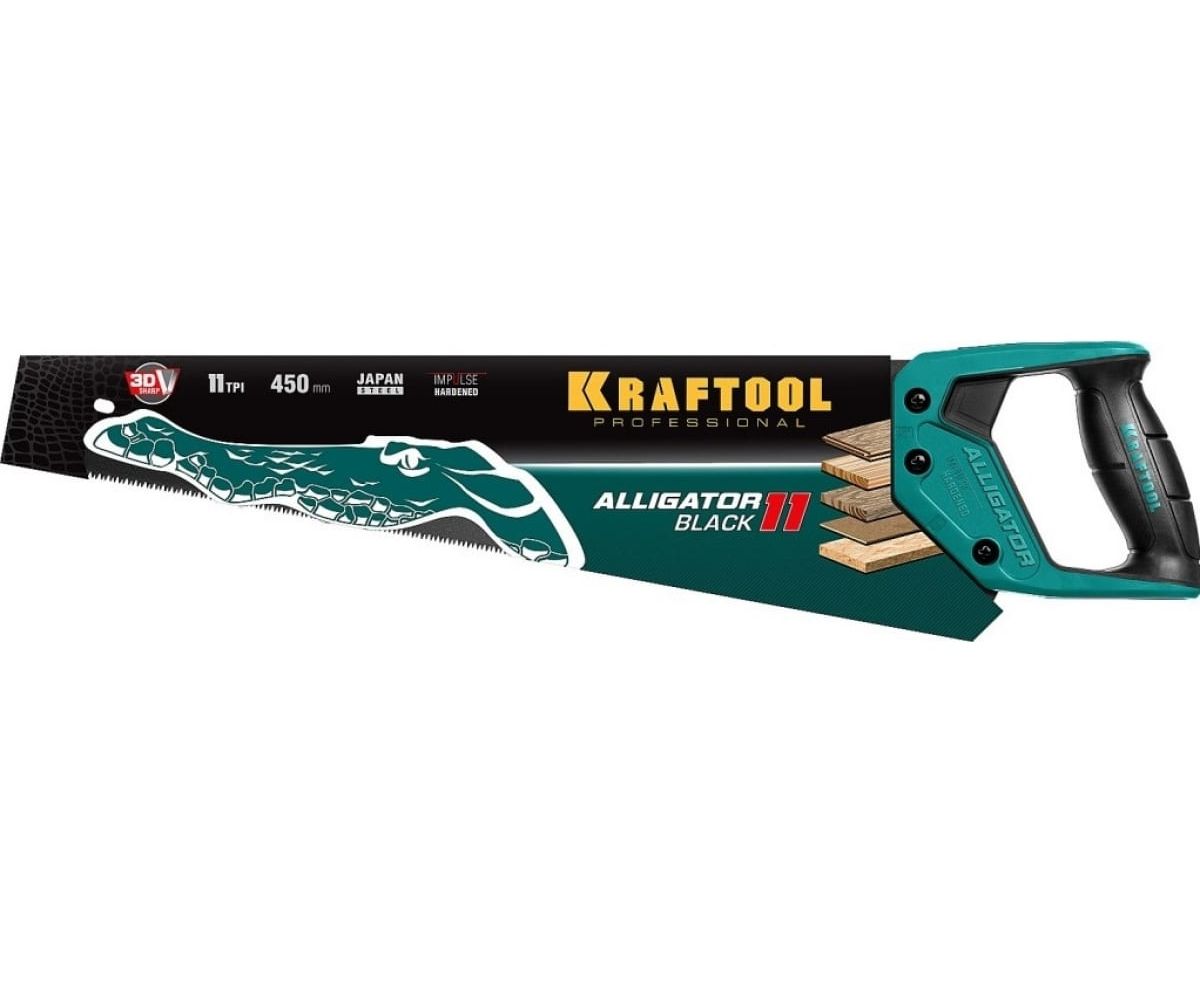 Ножовка KRAFTOOL Alligator Black 11 15205-45 для точного реза 450 мм, 11 TPI 3D зуб