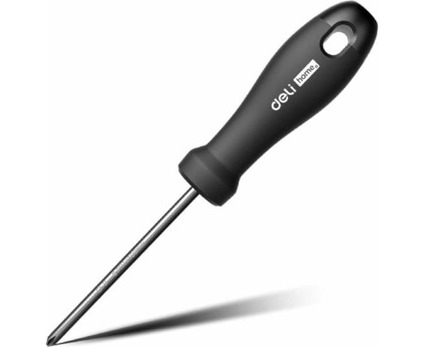 Крестовая отвертка DELI Home Series Black HT1205 PH1x100мм, Cr-V, Soft Touch рукоятка, подарочная упаковка, эксклюзивный дизайн 104607 используется для работ с резьбовыми соединениями в процессе ремонта или монтажа.