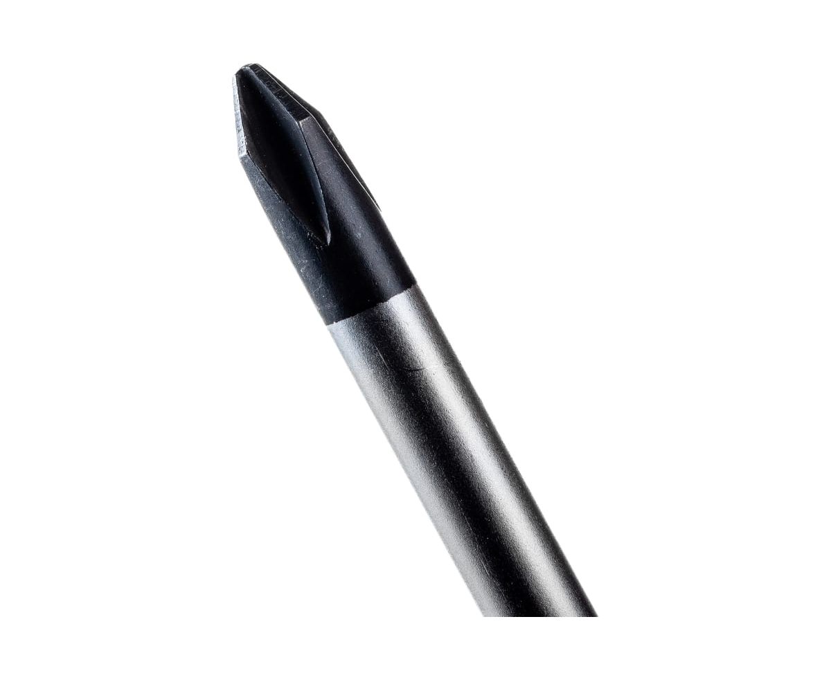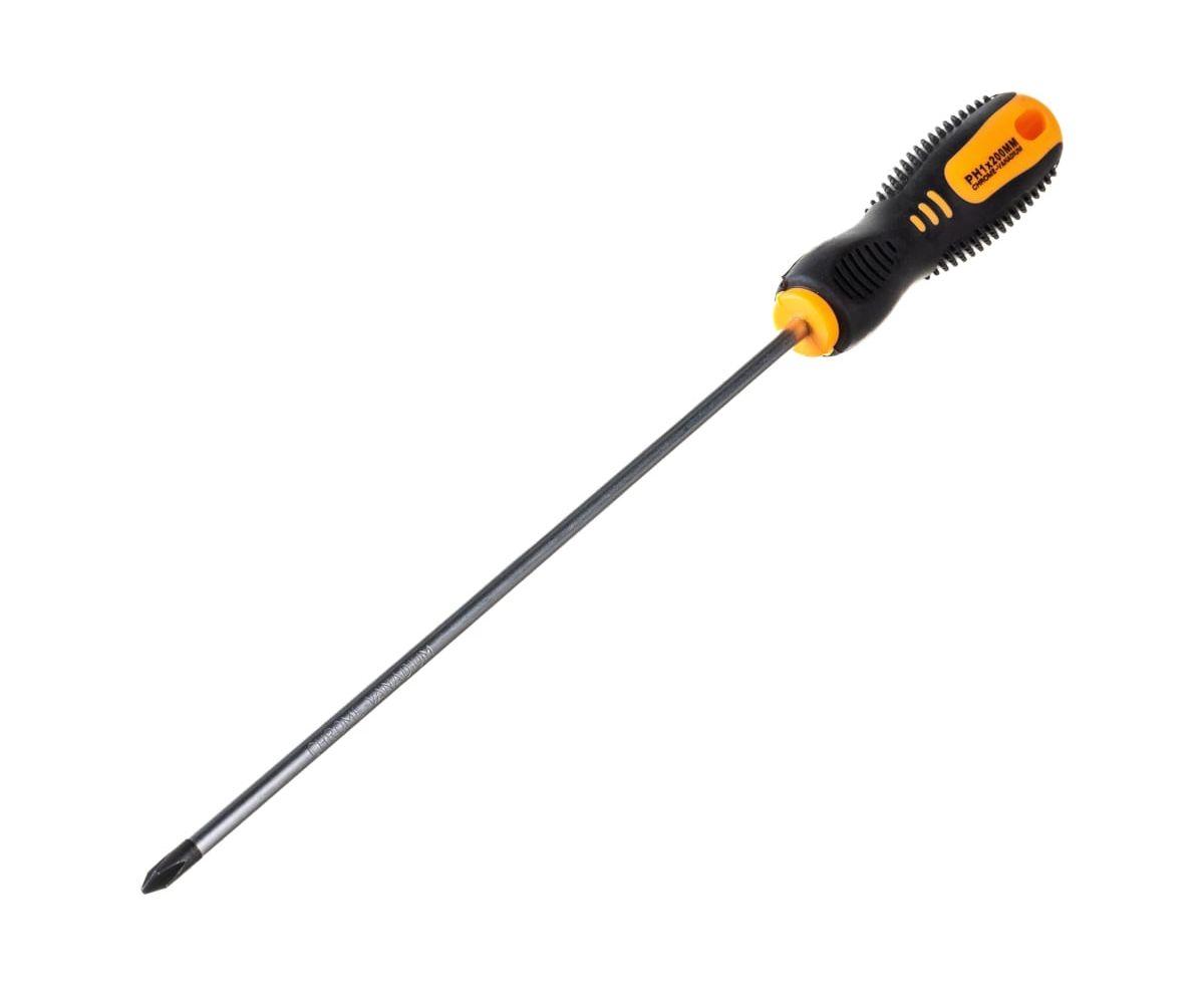 Отвертка крестовая предназначена для проведения монтажа и демонтажа резьбовых соединений: шурупов, саморезов и т. д. Стержень инструмента, устойчивый к коррозии, выполнен из качественной хромованадиевой стали и оснащен оксидированным намагниченным наконечником.