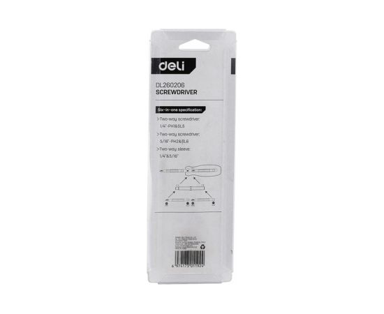 Отвертка многофункциональная Deli DL260206 6-в-1 биты SL5, SL6, PH1, PH2