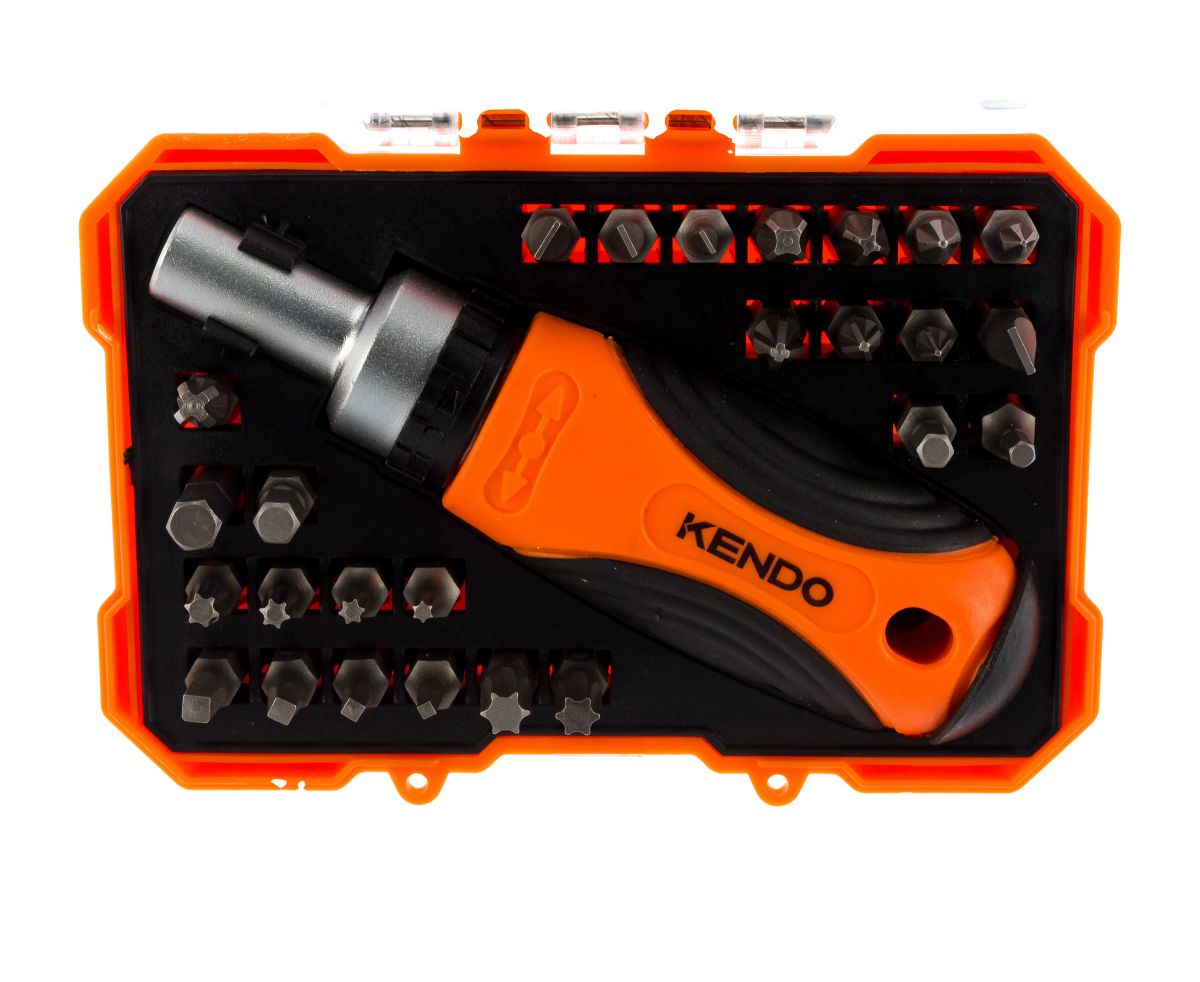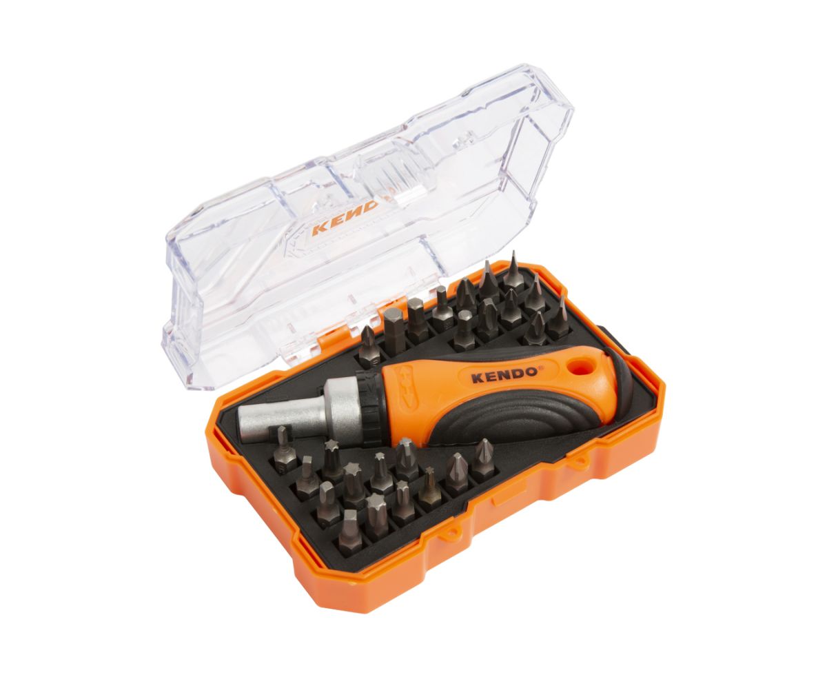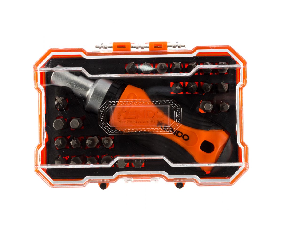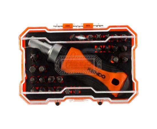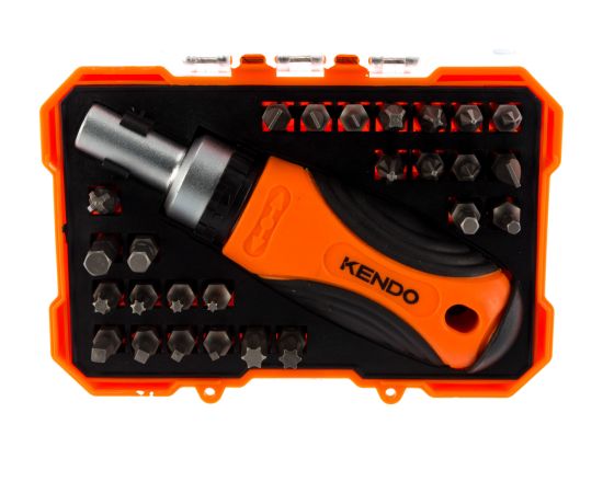 Отвертка с трещоткой KENDO 20665 с набором бит (27 предметов)