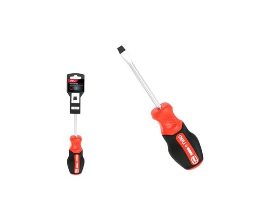 Отвертка шлицевая DELI DL3446 SL6x38мм сталь S2, матовый стержень, двухкомпонентная прорезиненная рукоять